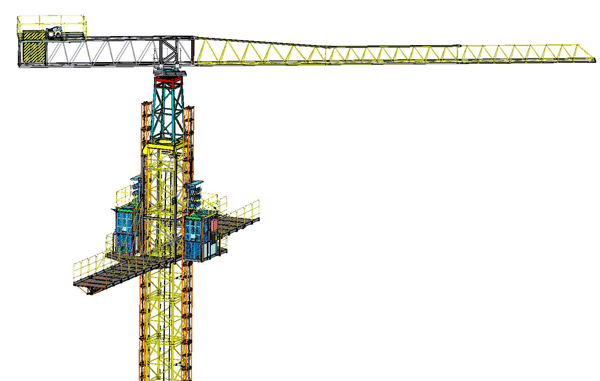 該綜合施工平臺(tái)借鑒塔機(jī)、升降機(jī)的成熟工藝和技術(shù),成為超高煙塔和冷卻塔施工中新的施工機(jī)械。